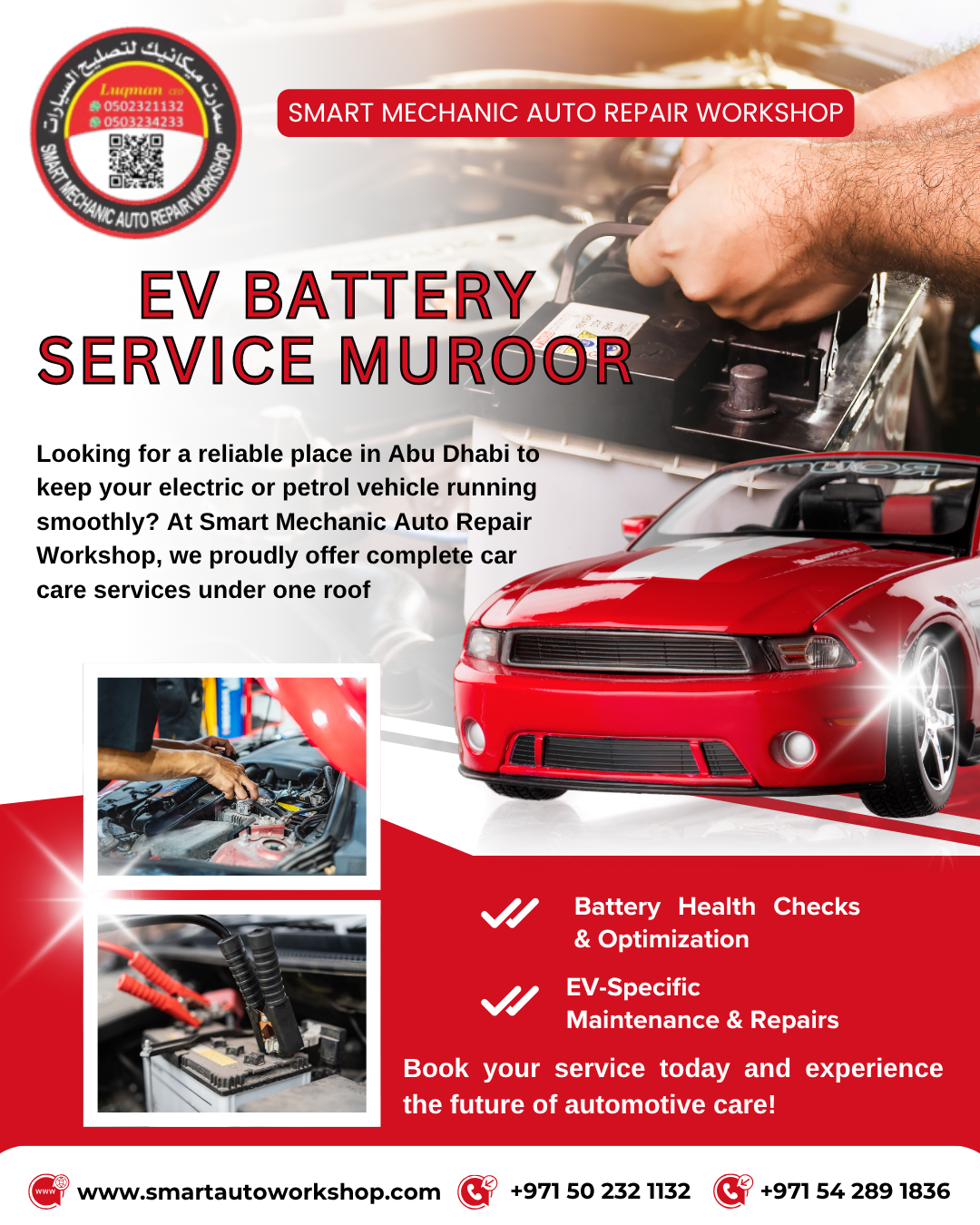 EV Battery Service Muroor: Expert maintenance, diagnosis, and repair for your electric vehicle’s heart. Trust Smart Mechanic Auto Repair Workshop.