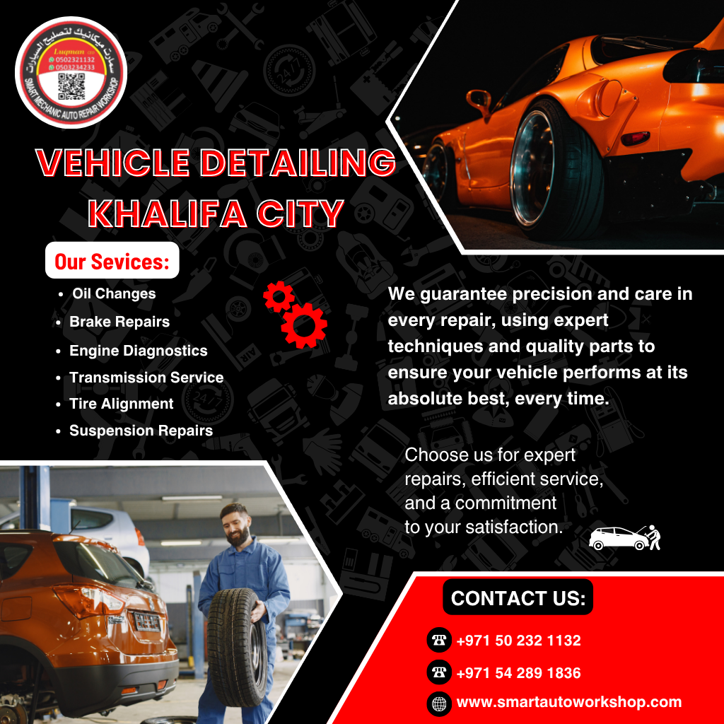 Vehicle Detailing Khalifa City by Smart Mechanic Auto Repair Workshop offers premium car care in Abu Dhabi.